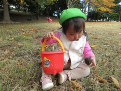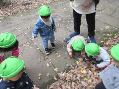 秋探しがブームになりつつあるもも組さん。自然と沢山触れ合い