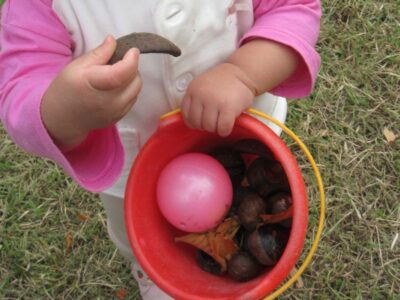 他にもバケツを持ち歩きながら、どんぐりやトチの実を見つけて