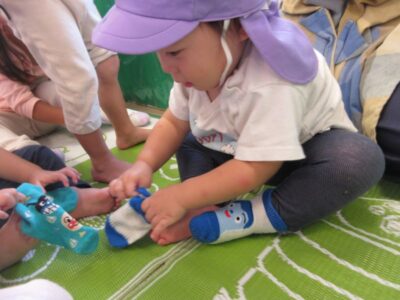 【すみれ保育園】靴下はいてみよう~たんぽぽ組~