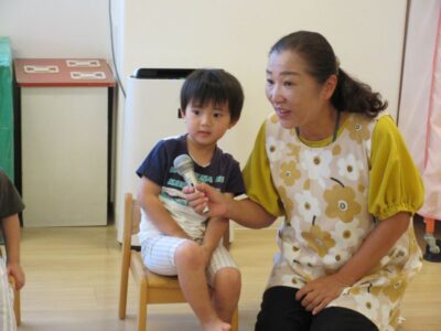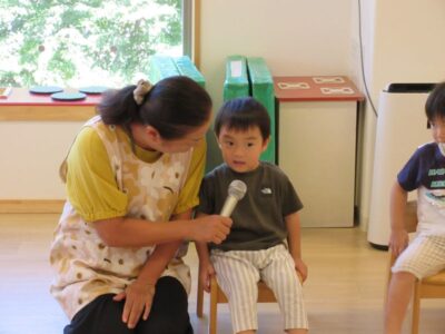 さっそく9月生まれのお友達が前に出て、ゆきこ先生からインタビュー(^^)/