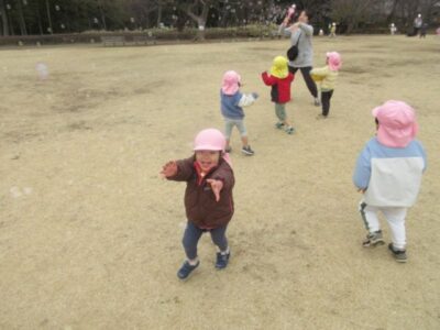 シャボン玉を追いかけたり、ボールを蹴ったり、走ったり…