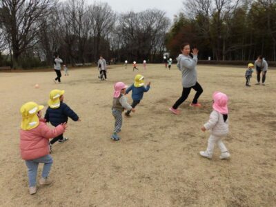 お昼の後は、広場でシャボン玉やボール、しっぽとり遊び♪