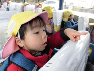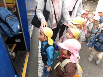 朝の会が終わり、念願の幼稚園バスに乗って出発です🚌