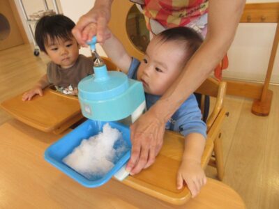 【すみれ保育園】かき氷を作ろう!~もも組~