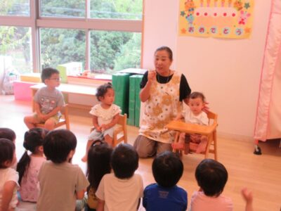 【すみれ保育園】8月のお誕生日会~全園児~