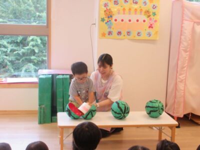お楽しみでちさと先生が持ってきたものは…なんとスイカ!