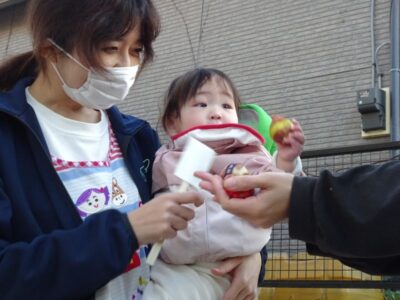 「これが球根だよ」と見せると不思議そうに見つめる子ども達☺
